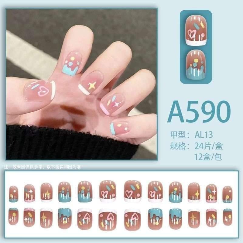 Multi Design Cute Fashionable Fake Nails with Glue